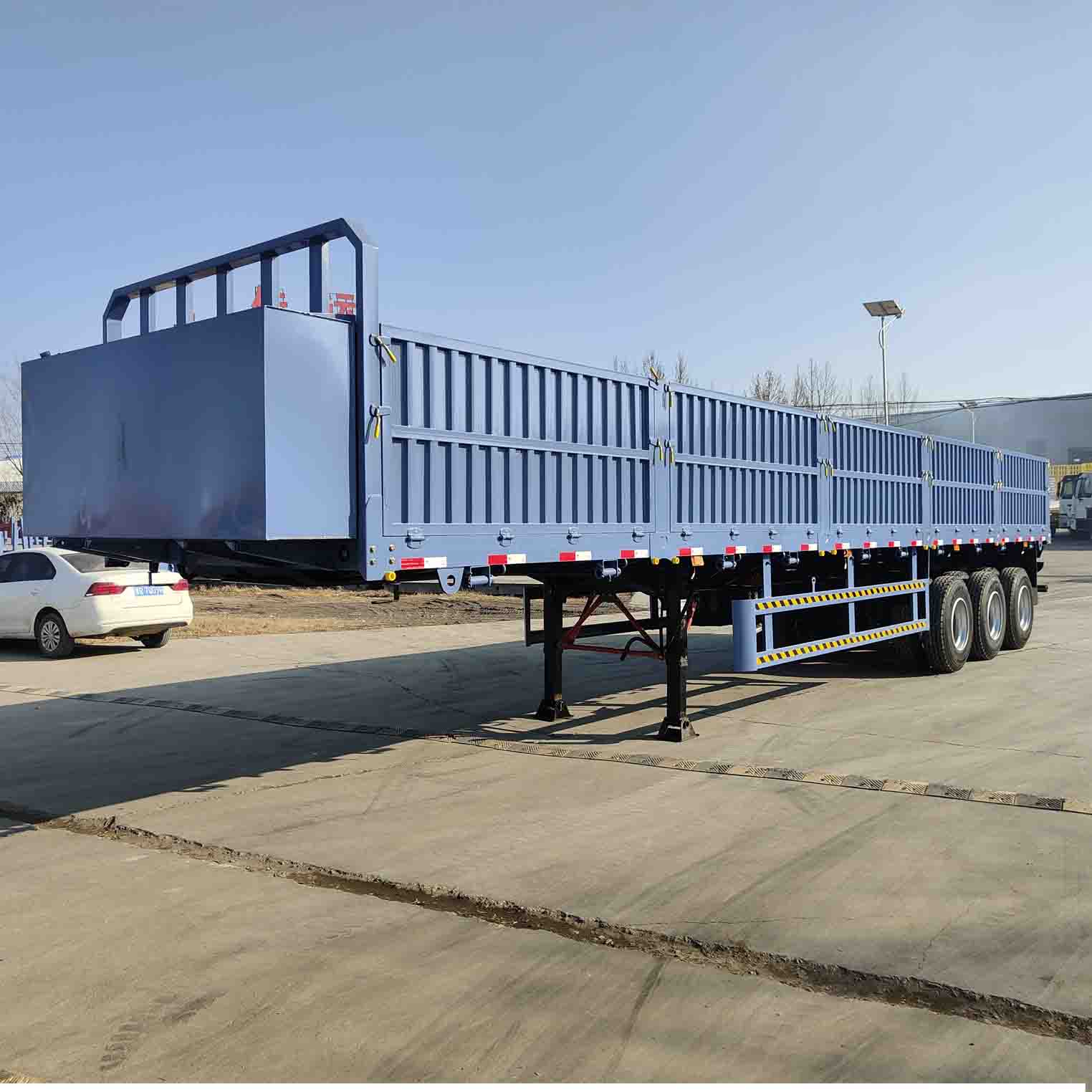 DeRunin kolmen akselin Dropside-puoliräkevaihe hyväksyy kolmen akselin rakenteen suunnittelun, mikä ei vain paranna kuormituskapasiteettia, vaan varmistaa myös ajoneuvon ajovakauden ja ohjattavuuden monimutkaisissa tieolosuhteissa. Kasekuunnittelu harkitsee täysin lastaamisen ja purkamisen mukavuutta sekä tavaroiden kiinnittämisen turvallisuutta tarjoamalla käyttäjille joustavampia ja tehokkaampia kuljetusratkaisuja.