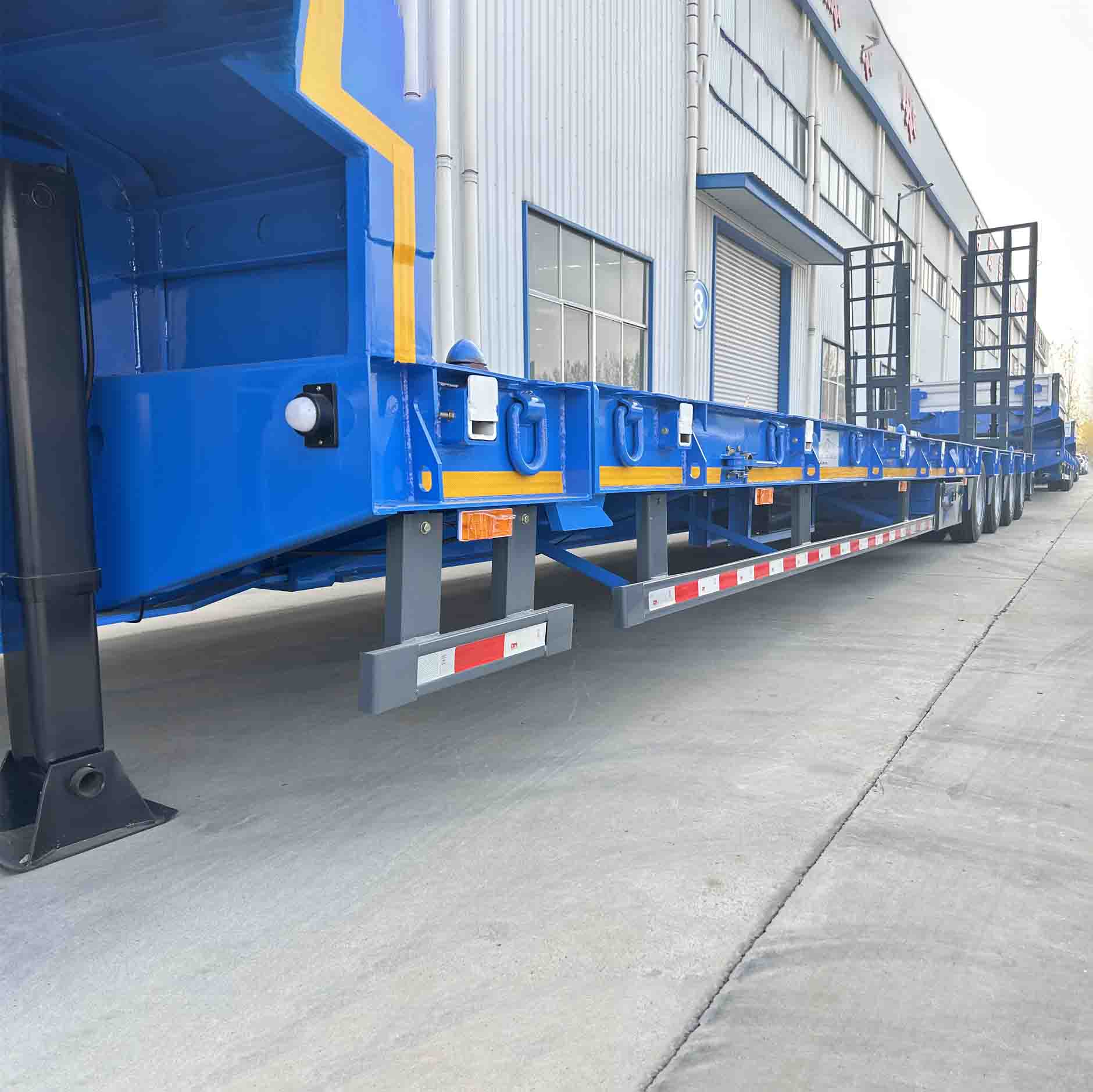 Derunin neljän akselin matalan hengen puolivälissä oleva puoliväli on valmistettu erittäin lujasta teräksestä, mikä tarjoaa erinomaisen kestävyyden ja vakauden. Sen suunnittelu ottaa huomioon Venäjän ankaran ilmaston ja monimutkaisen maaston vaikutukset, mikä varmistaa erinomaisen suorituskyvyn kaikenlaisissa äärimmäisissä ympäristöissä. Tasatuolin tasainen ja sileä pinta helpottaa lastausta ja purkaa laaja valikoima raskaita lastia vähentämällä lastin vaurioiden riskiä kuljetuksen aikana.